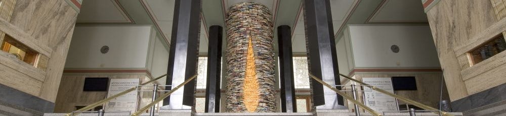Je to vlastně trochu legrační. Pro nás, kteří jsme do Městské knihovny na Mariánském náměstí chodili už jako malí pro další dobrodružství Správné pětky, se stala umělecká instalace zvaná Idiom (nebo taky Nekonečná studna či Sloup vědění) slovenského výtvarníka Mateje Kréna něčím mile známým, ale zcela běžným.